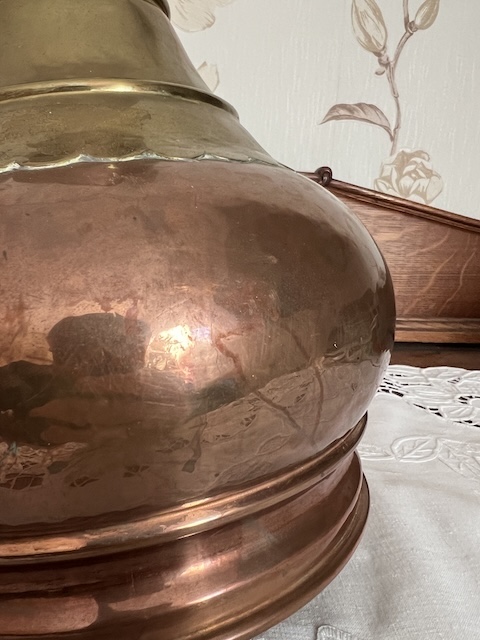 Dzbanek wykonany z miedzi i mosiądzu. Widoczne są niewielkie ślady użytkowanie. Stan dzbanka pokazany jest szczegółowo na zdjęciach.