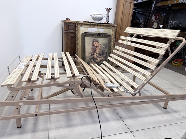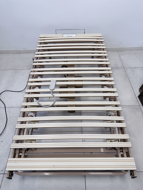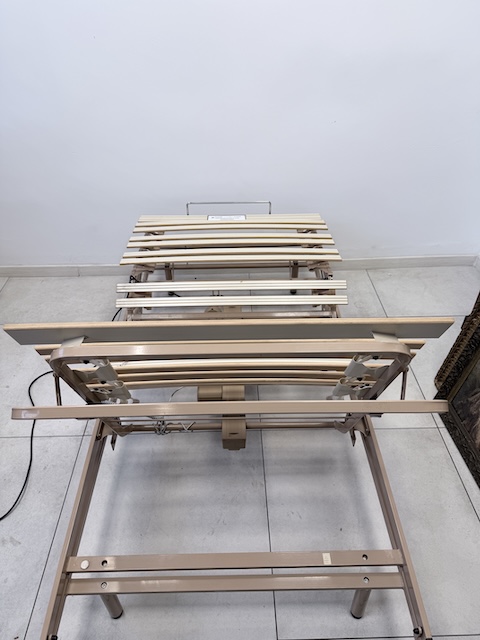Stelaż elektryczny do łóżka. Jest sprawny. Jego ułożenie ustawiane jest za pomocą pilota. Jest w dobrym stanie. Nosi typowe ślady użytkowania. Pasuje do łóżka o wymiarach 200 x 100 cm. Gotowy jest do wstawienia.