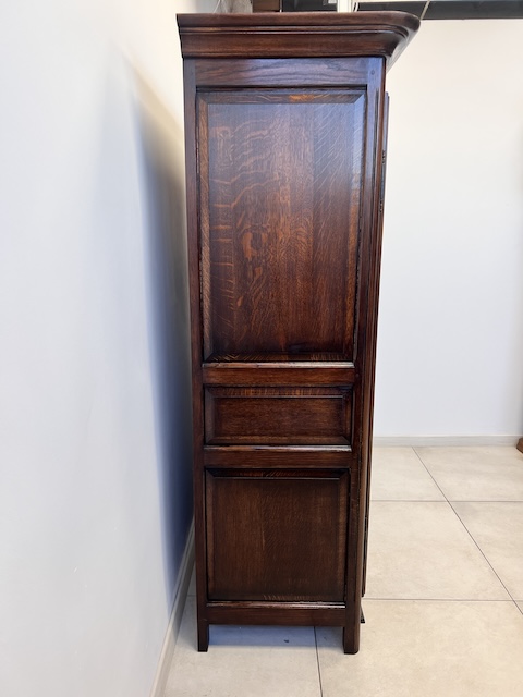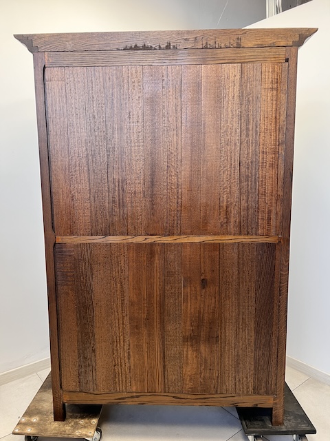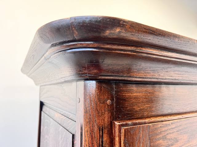 Szafa dwudrzwiowa. Wykonana jest z litego drewna, czopowana. Solidna, o ponadczasowym designie i prostej formie. Bardzo ładna. Jest zachowana w dobrym stanie. Nie ma żadnych uszkodzeń ani ubytków. Nosi typowe ślady użytkowania. Zamek jest sprawny z kluczem w komplecie. Jest nierozbieralna i do nowego właściciela przyjedzie w całości. Gotowa jest do wstawienia.